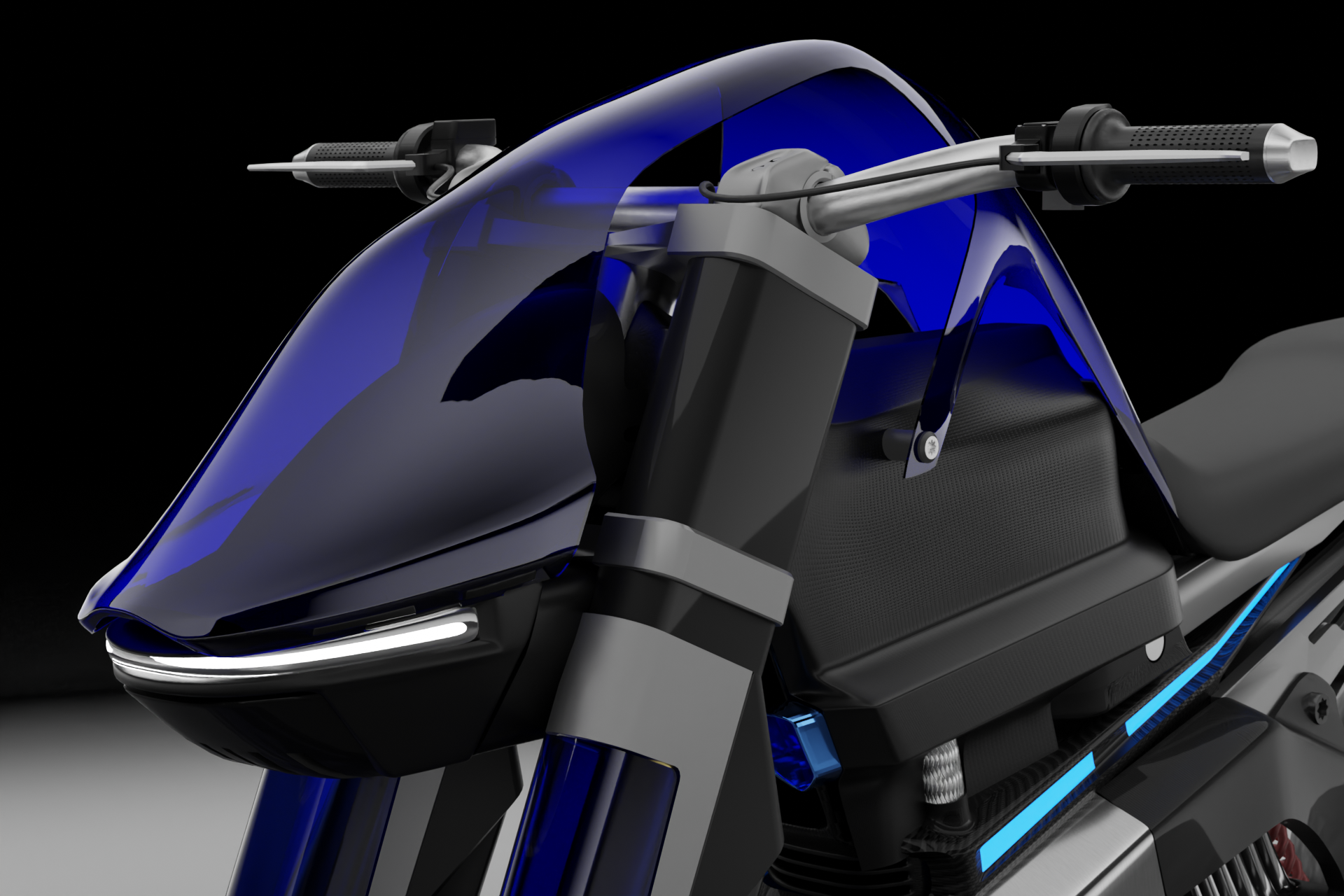 The Yamaha MT-E is an electric powered successor to the Yamaha MT-09. It's proportions and stance are organized to convey power and gravitas. This motorcycle breaks the mold for the Hyper Naked segment and is designed to inspire the imagination of riders and enthusiasts.